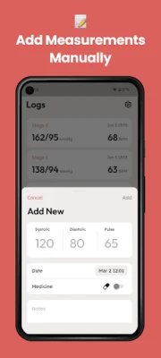 Seamlessly log your high blood pressure measurements, including systolic and diastolic readings, as well as your pulse rate. Stay on top of your health with a simple tap, allowing you to effortlessly track and monitor changes over time in your BP diary.