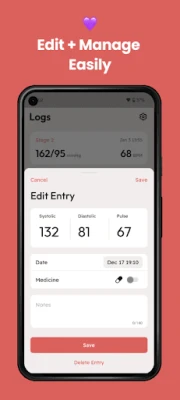 Edit entries anytime, anywhere, with the flexibility to adjust and refine your blood pressure tracker records as needed. We understand that health data is dynamic, and our app empowers you to stay in control.