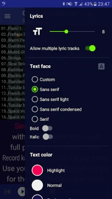 🎤 Karaoke & MIDI Playback: Visualize MIDI, MOD, and CDG (MP3+G) files. See karaoke lyrics and chords, and customize the font and background for a personalized experience.